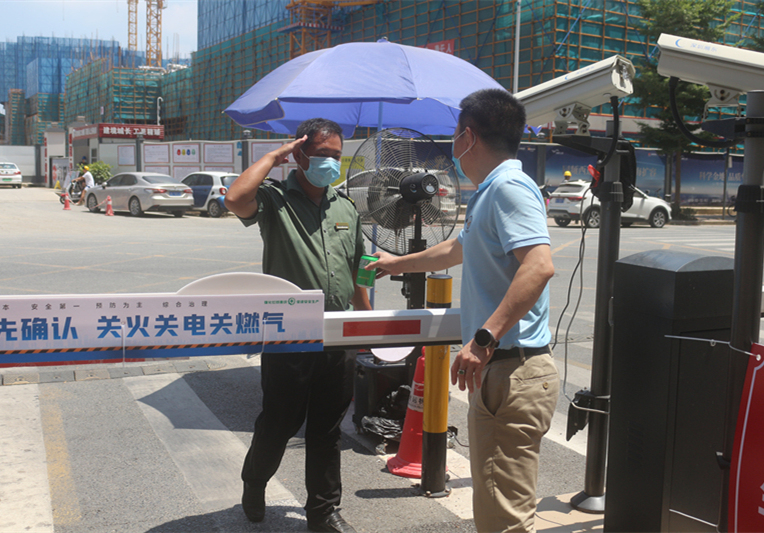 咬定青山不放松,立根原在破巖中。 千磨萬(wàn)擊還堅(jiān)勁,任爾東西南北風(fēng)。 ——清代鄭燮的《竹石》 炎炎酷暑,疫情再起,鴻運(yùn)物業(yè)保安員們站出崗?fù)ぃ斨邷仳?yàn)碼排查,用“咬定青山不放松”的精神,堅(jiān)決踐行防疫措施;用“千磨萬(wàn)擊還堅(jiān)勁”的定力,堅(jiān)守小區(qū)“安全門”。7月26日上午,鴻運(yùn)物業(yè)總經(jīng)理陳喜祥、黨支部書記陳文遠(yuǎn),同高層代表、黨員代表,前往鴻運(yùn)物業(yè)服務(wù)的小區(qū),慰問(wèn)一線保安員們??偨?jīng)理陳喜祥為保安員們送上飲料,一聲聲“辛苦了”道出對(duì)保安員工作的肯定和感謝。陳總要求各物業(yè)服務(wù)中心備齊解暑應(yīng)急藥品,定期開(kāi)展“送清涼”活動(dòng),讓員工在辛勤的工作中感受到公司的關(guān)懷。鴻運(yùn)物業(yè)黨支部書記陳文遠(yuǎn)與保安員握手交談,叮囑其多喝水、注意防暑,并切身感受其工作環(huán)境,和黨員代表們一同提出改良建議。在麒麟花園,我們遇到了黨員志愿者,陳文遠(yuǎn)書記對(duì)黨員志愿者的支持表示感謝。在人流量較大的沙頭舊村卡口,我們見(jiàn)到了保安員耐心指引無(wú)法打開(kāi)健康碼的居民,保證卡口暢通不擁堵;在鴻德園卡口,我們見(jiàn)到了保安員為沒(méi)有佩戴口罩的老人送上口罩;在盛芳園卡口,我們見(jiàn)到了保安員耐心與外賣員溝通,為其解釋新下達(dá)的外賣員快遞員不能進(jìn)入小區(qū)的規(guī)定;在麒麟花園卡口,我們見(jiàn)到了保安員奔跑到烈日下,細(xì)致查驗(yàn)車中人員的健康碼……因部分物業(yè)服務(wù)中心需協(xié)助處理居民核酸采樣,為不影響正常工作,未能一一前往慰問(wèn),在此向全體鴻運(yùn)人道一聲“辛苦了”!